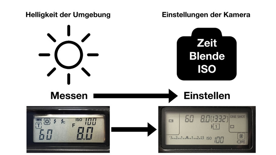 1. Funktion von Zeit, Blende und ISO für die Belichtung: