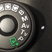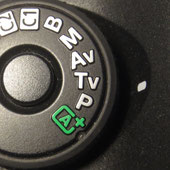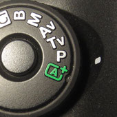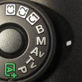 Die Programmautomatik (P): Bei der Programmautomatik wählt die Kamera selbständig eine Kombination von Blende und Verschlusszeit, wobei der Fotograf aber in der Regel über ein Rad (z.B. über dem Auslöser der Kamera) Einfluss darauf nehmen kann, wie das Verhältnis von Blende und Verschlusszeit sein soll (also ob es eine lange Belichtung mit geschlossener Blende oder eher eine kurze Belichtung mit offener Blende werden soll). Die Programmautomatik bietet gegenüber der „grünen Automatik“ (also der vom Hersteller voreingestellten Vollautomatik) den Vorteil, dass z.B. die ISO, der Weißabgleich oder das Aufzeichnungsformat (RAW oder JPG) selbst gewählt werden können. Der Nachteil der Programmautomatik ist aber, dass eine gezielte Vorgabe von einer Blende oder Verschlusszeit nicht vorgesehen ist, was aber aus gestalterischer Sicht (z.B. eine offene Blende zum Arbeiten mit Unschärfe und Schärfe) oder aus technischer Notwendigkeit (z.B. eine kurze Verschlusszeit zum „Einfrieren“ eine Motivs) oft notwendig ist. Dazu gibt es die beiden anderen Automatikmodi (Av und Tv).